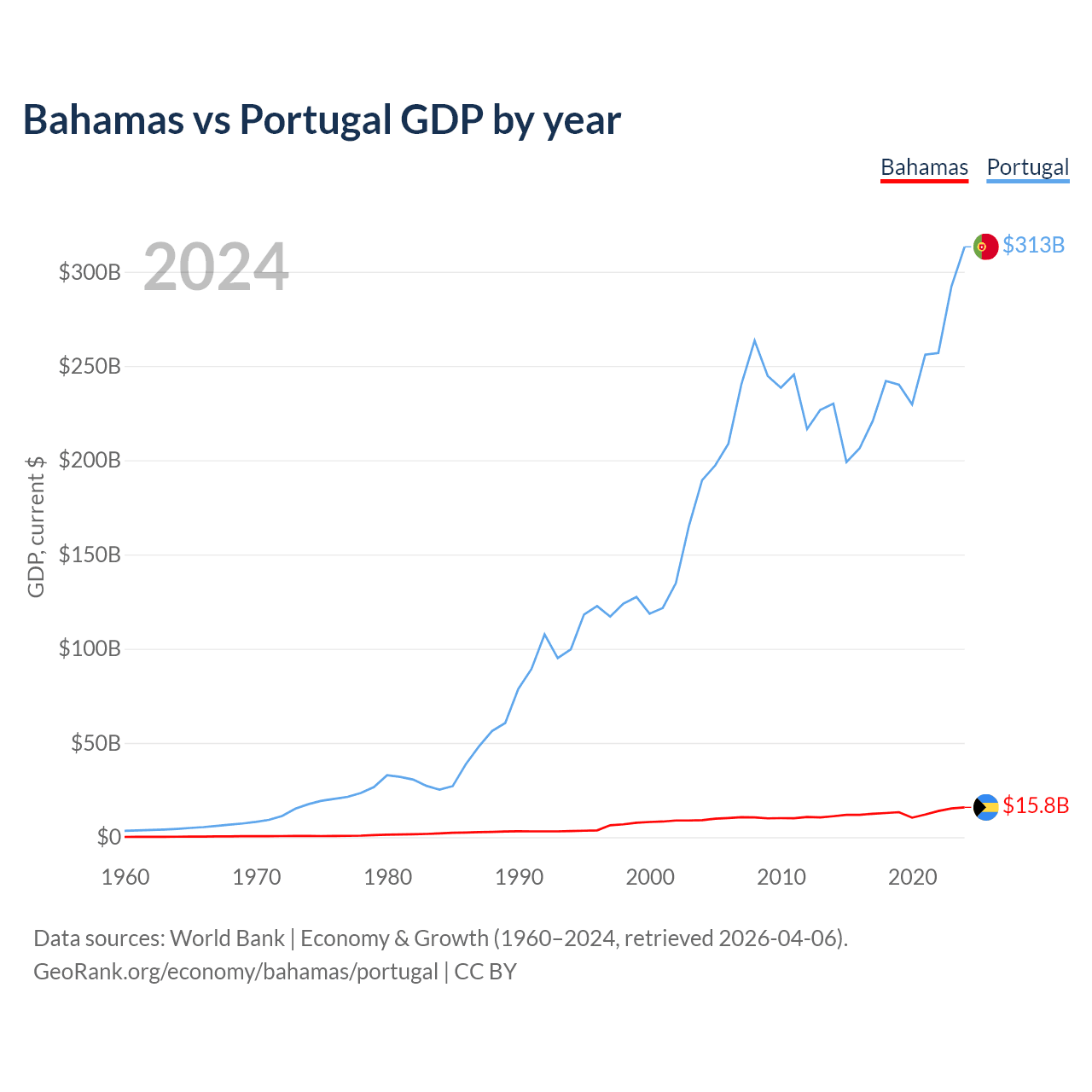 Bahamas vs Portugal GDP by year