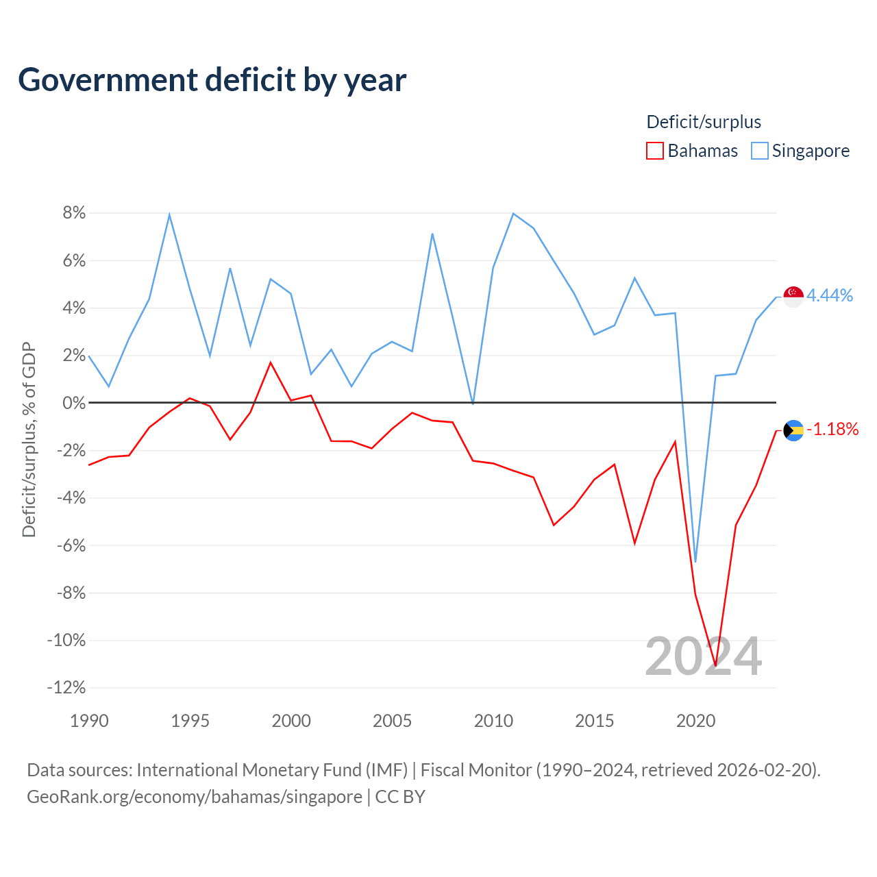 - International Monetary Fund (IMF) | Fiscal Monitor (1990–2024, retrieved 2026-02-20)