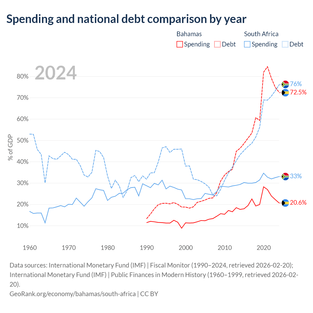 The Bahamas has $11.5B in government debt (72.5% of GDP), compared to $305B (76% of GDP) in South Africa.