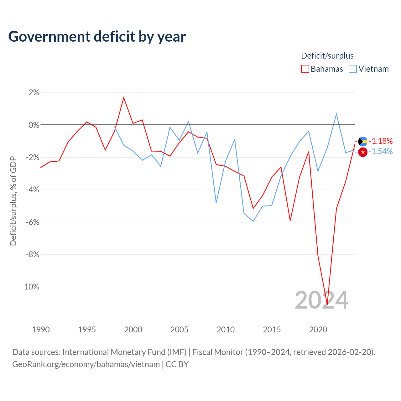 - International Monetary Fund (IMF) | Fiscal Monitor (1990–2024, retrieved 2026-02-20)