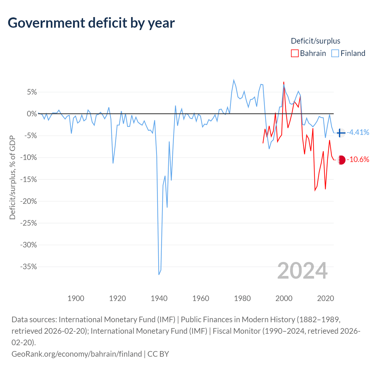 - International Monetary Fund (IMF) | Public Finances in Modern History (1882–1989, retrieved 2026-02-20)
