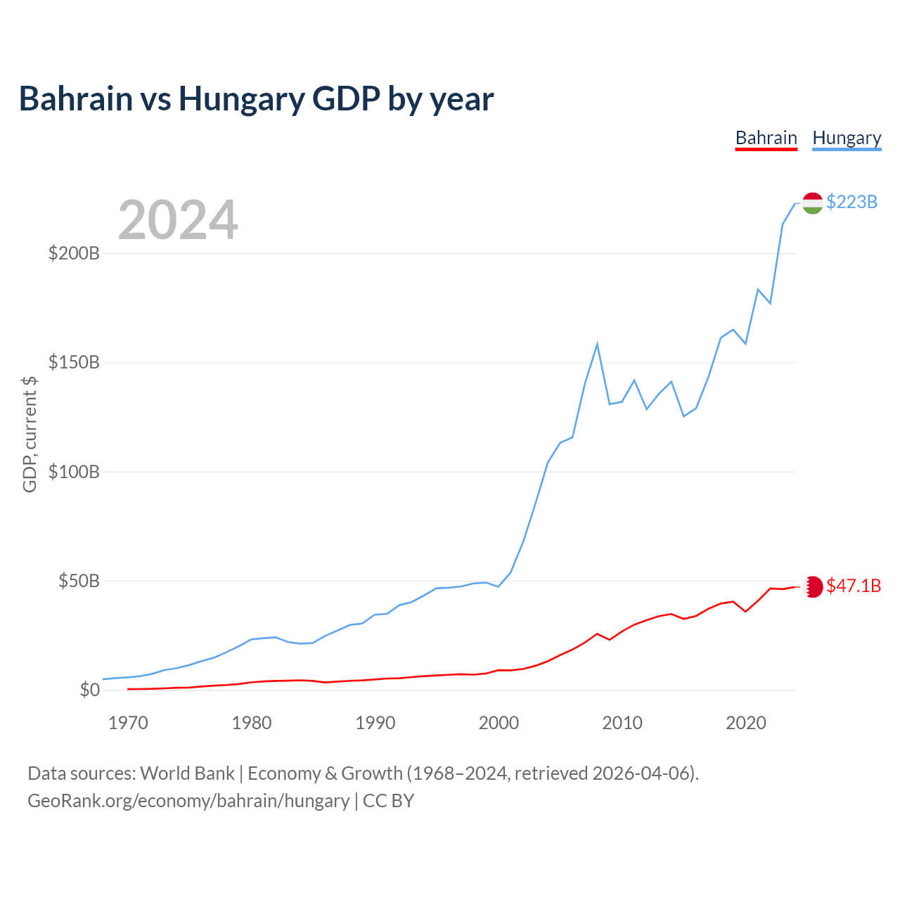 Bahrain vs Hungary GDP by year