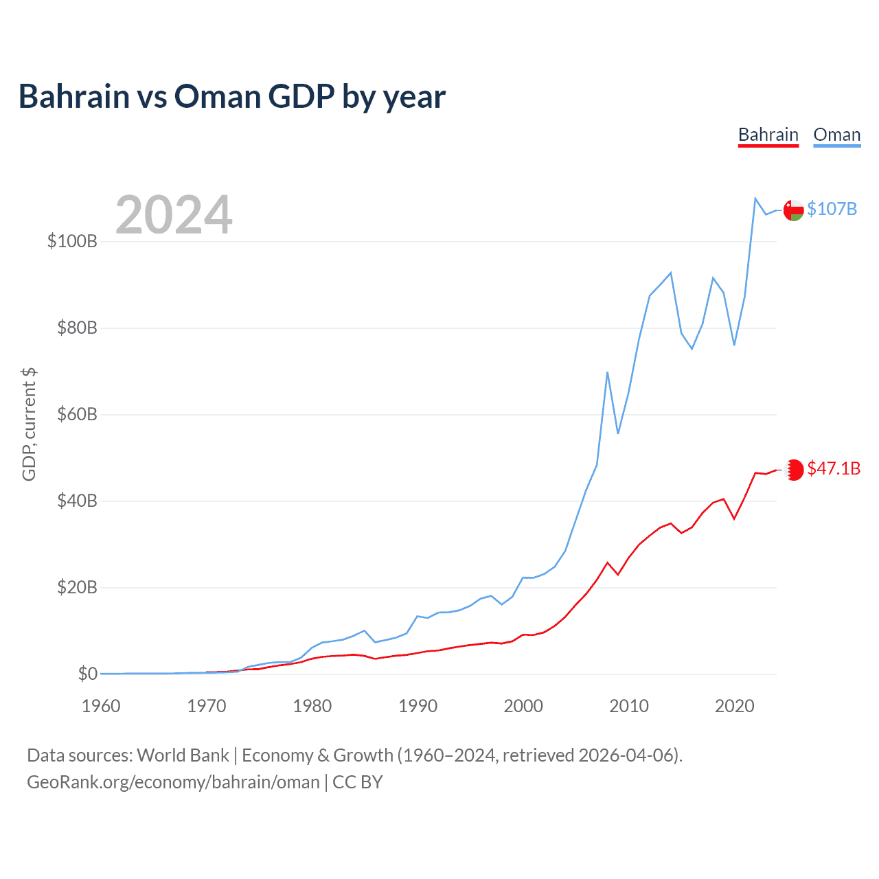 Bahrain vs Oman GDP by year
