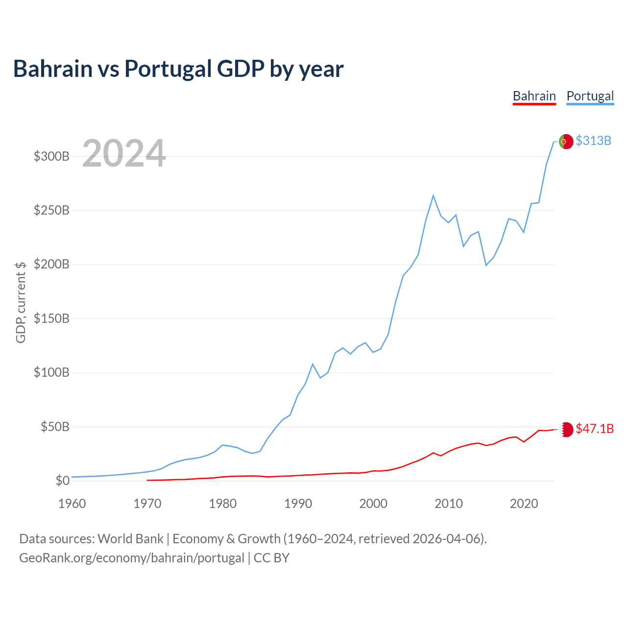 Bahrain vs Portugal GDP by year