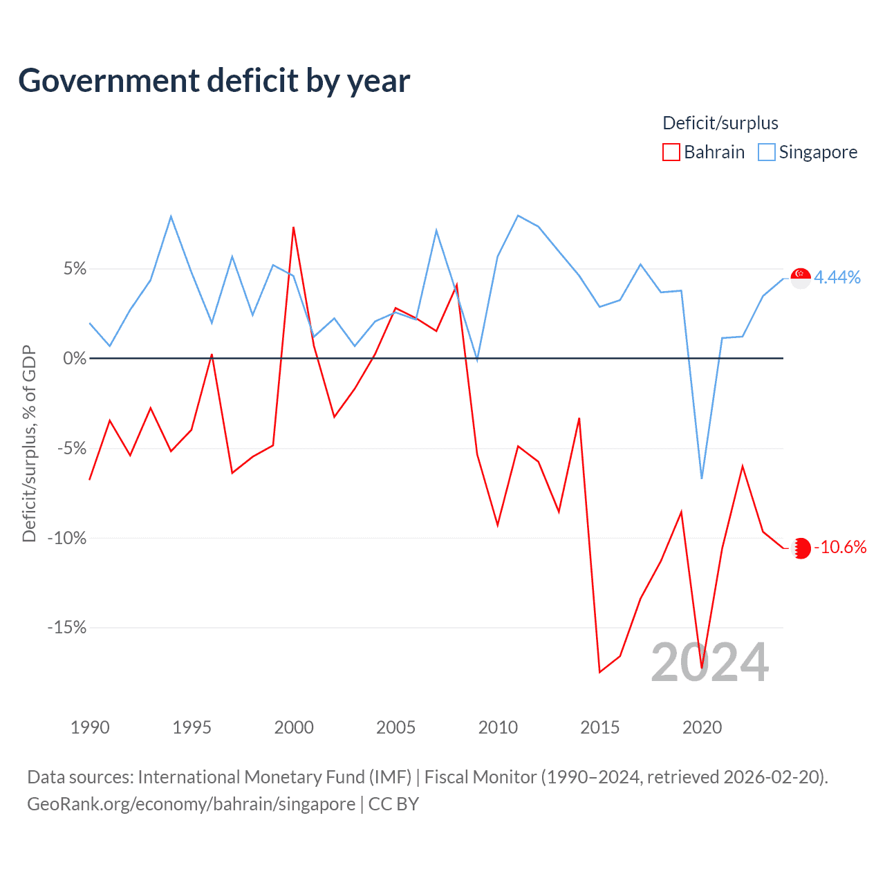 - International Monetary Fund (IMF) | Fiscal Monitor (1990–2024, retrieved 2026-02-20)