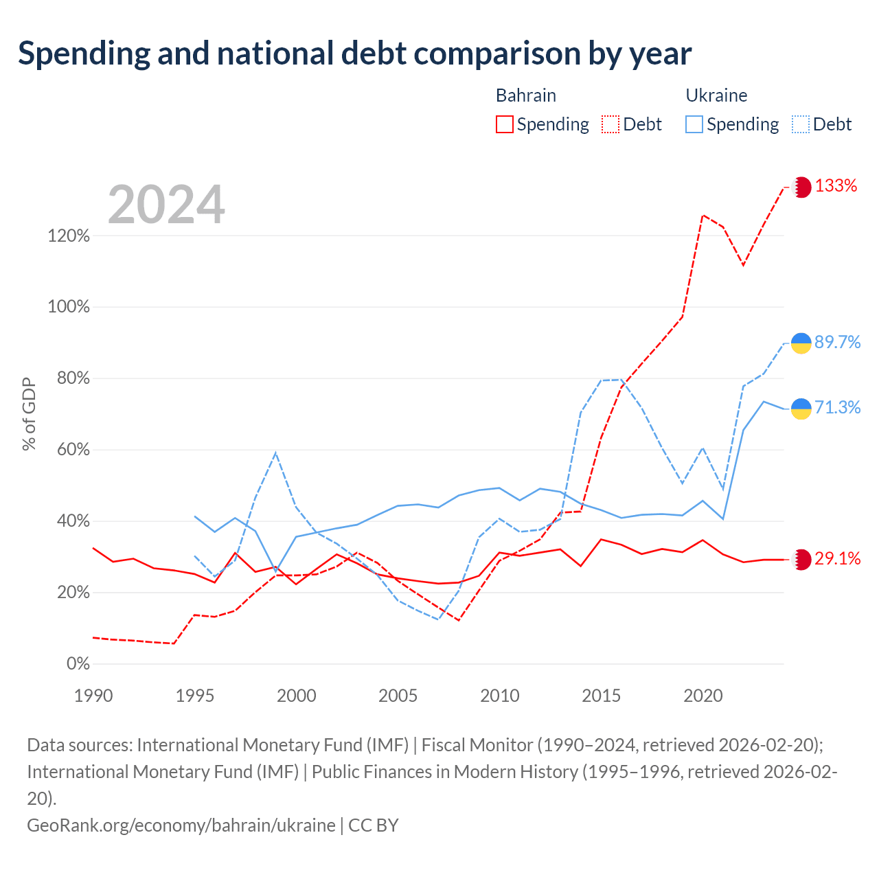Bahrain has $62.8B in government debt (133.4% of GDP), compared to $171B (89.7% of GDP) in Ukraine.