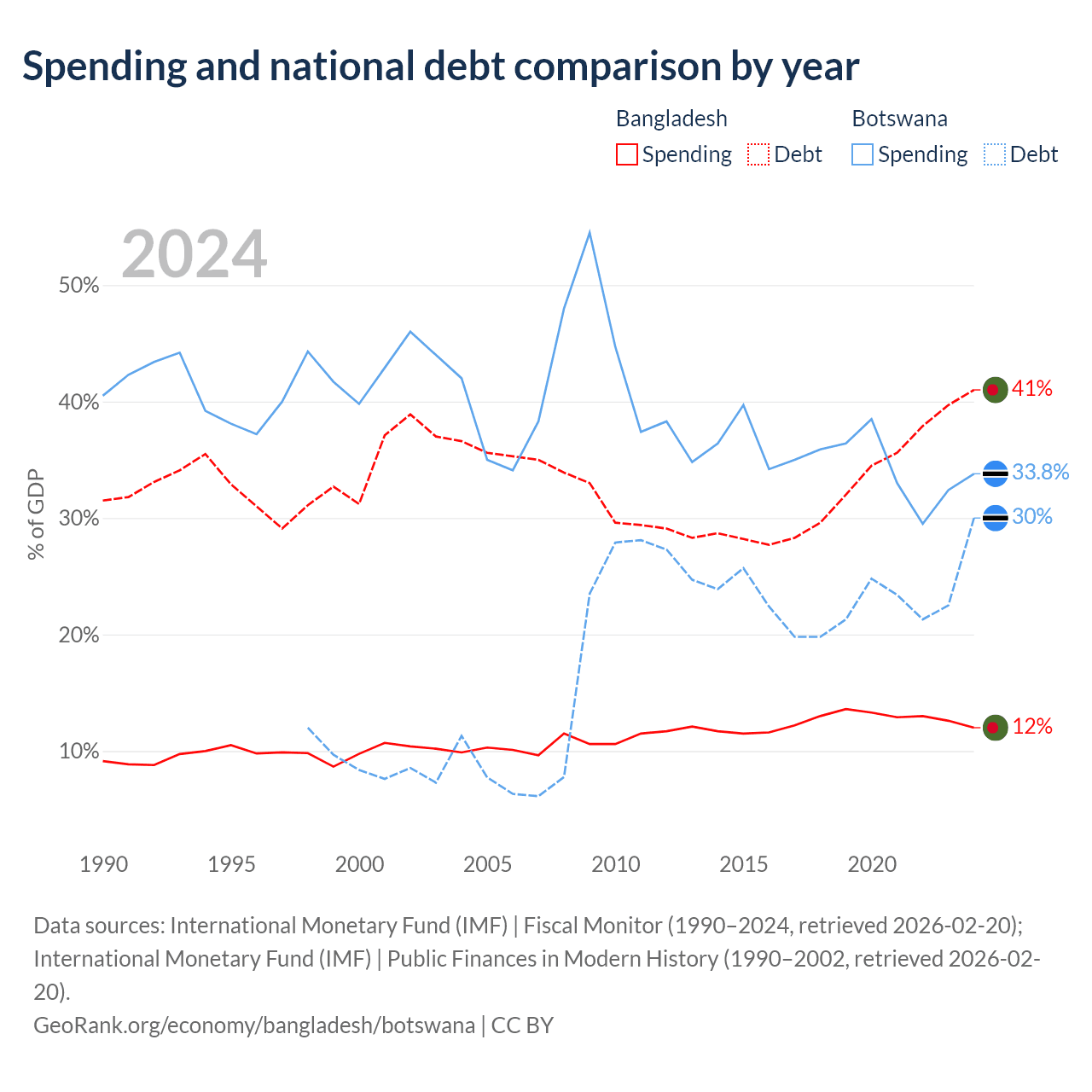 Bangladesh has $184B in government debt (41% of GDP), compared to $5.82B (30% of GDP) in Botswana.