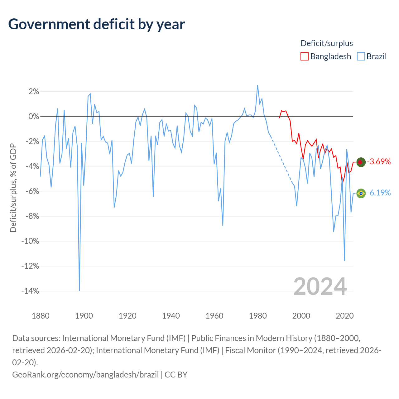 - International Monetary Fund (IMF) | Public Finances in Modern History (1880–2002, retrieved 2026-02-20)