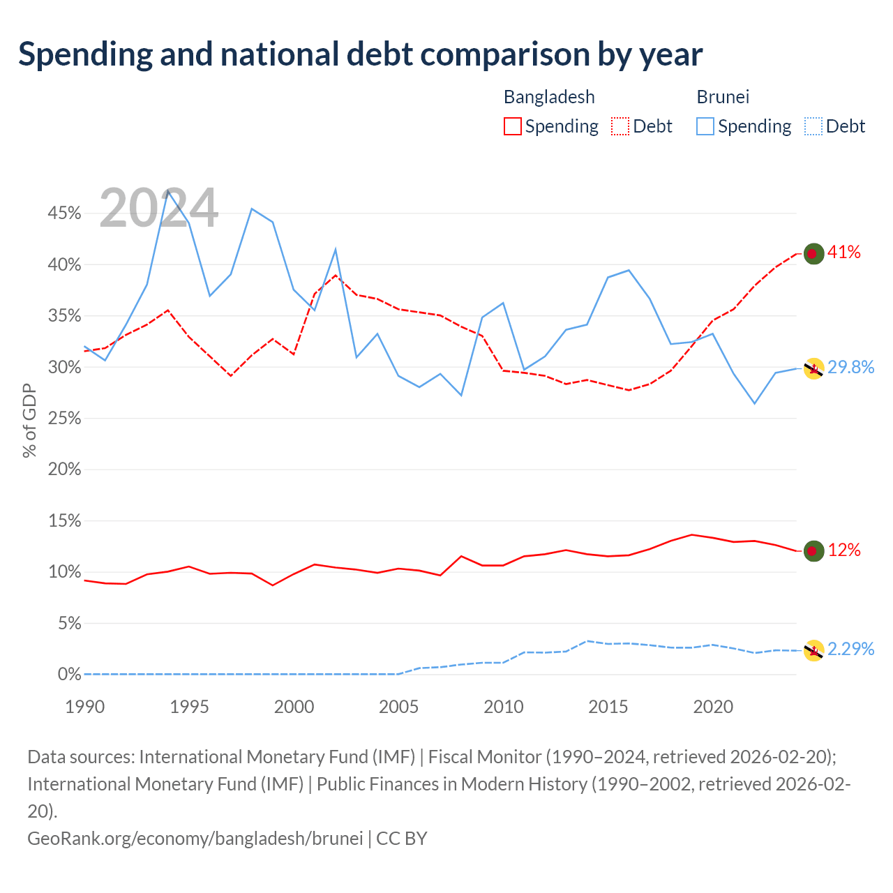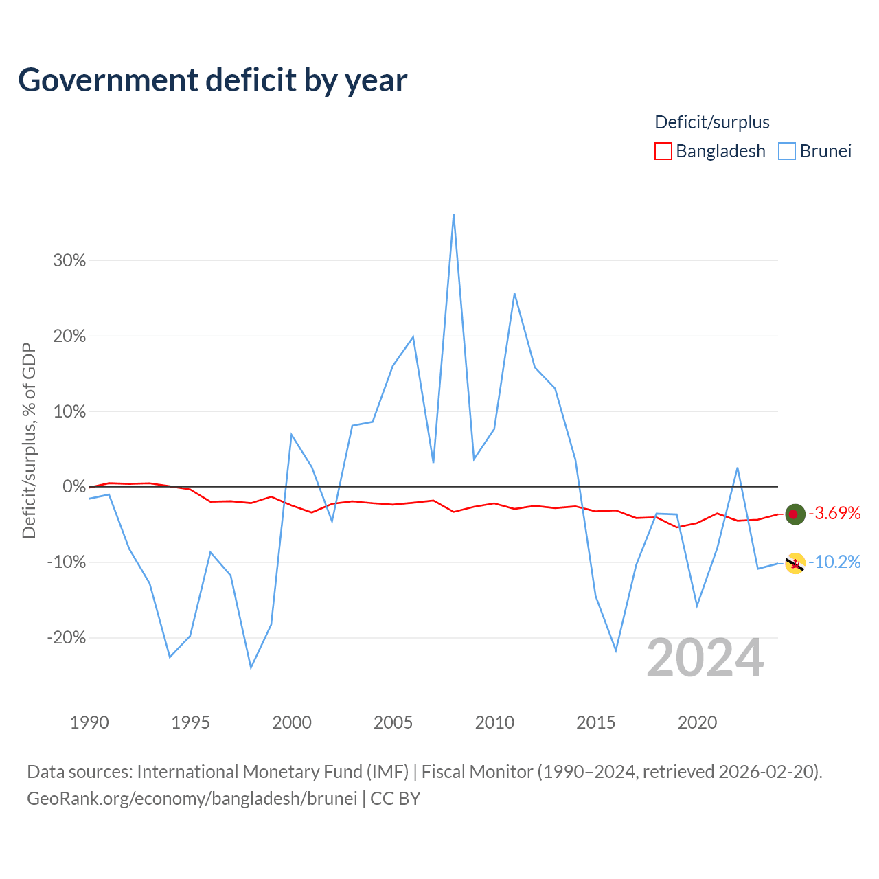 - International Monetary Fund (IMF) | Fiscal Monitor (1990–2024, retrieved 2026-02-20)