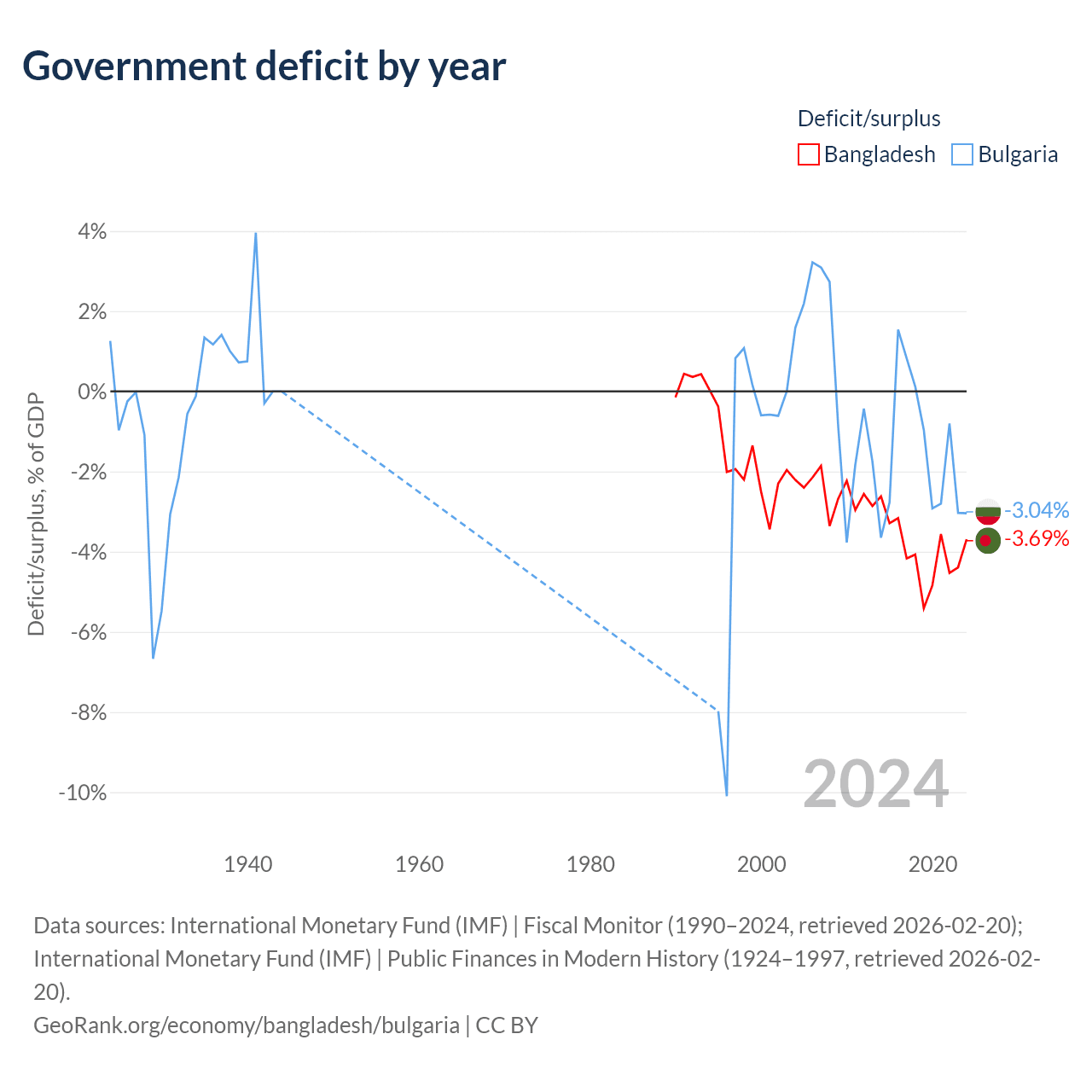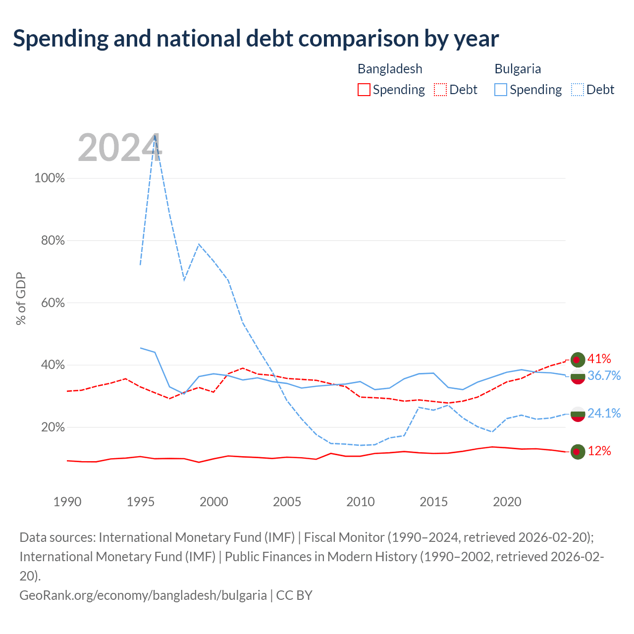 Bangladesh has $184B in government debt (41% of GDP), compared to $27.3B (24.1% of GDP) in Bulgaria.