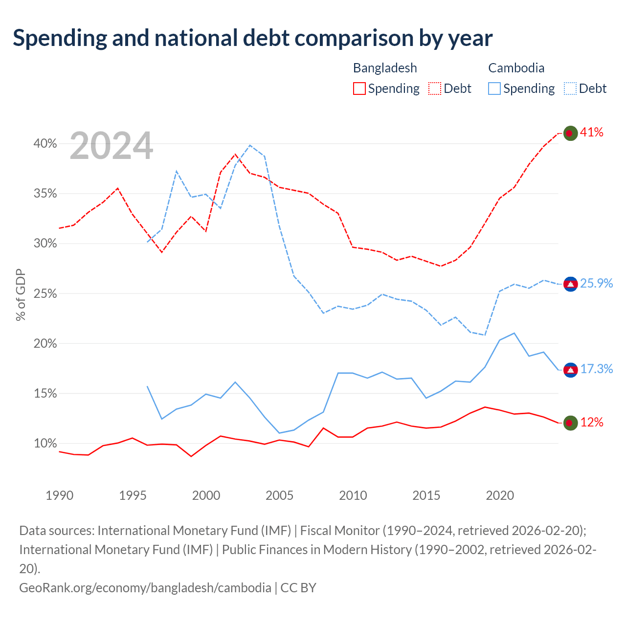 Bangladesh has $184B in government debt (41% of GDP), compared to $12B (25.9% of GDP) in Cambodia.