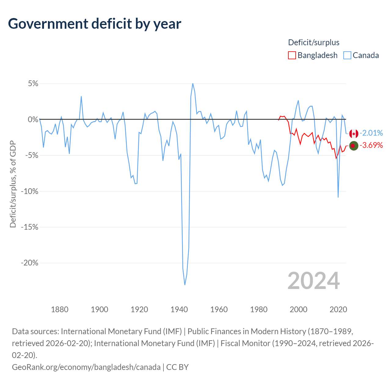 - International Monetary Fund (IMF) | Public Finances in Modern History (1870–2002, retrieved 2026-02-20)