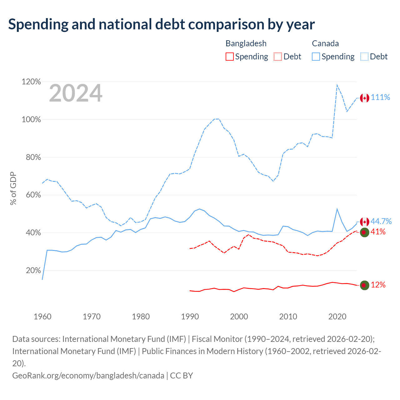 Bangladesh has $184B in government debt (41% of GDP), compared to $2.5T (111.3% of GDP) in Canada.
