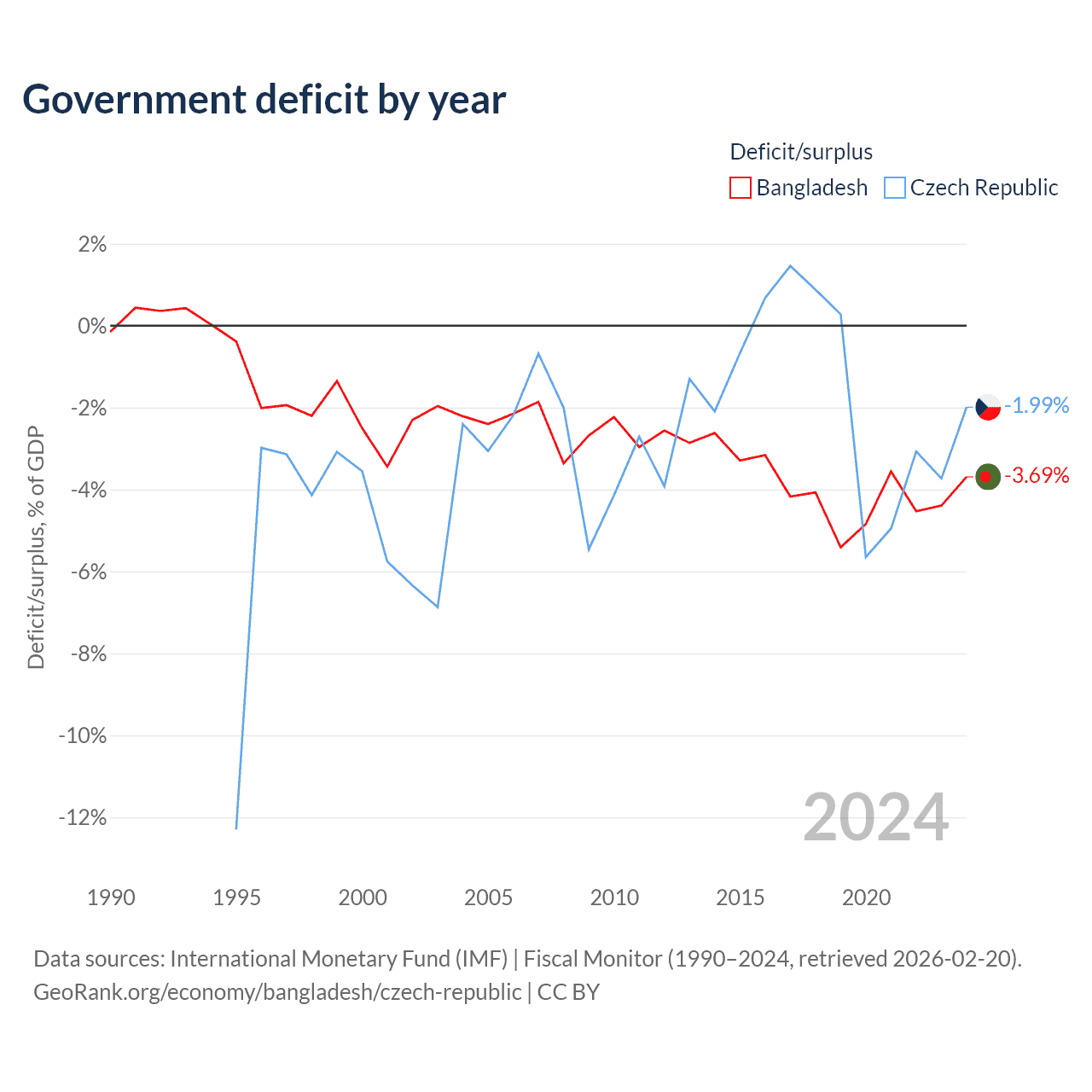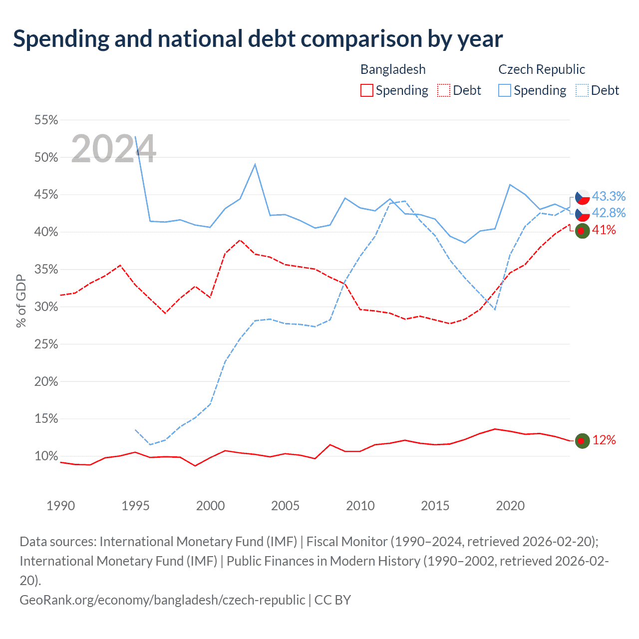 Bangladesh has $184B in government debt (41% of GDP), compared to $150B (43.3% of GDP) in the Czech Republic.
