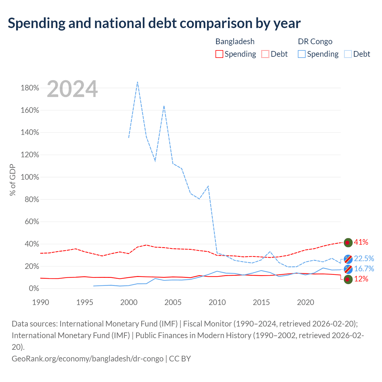 Bangladesh has $184B in government debt (41% of GDP), compared to $16B (22.5% of GDP) in the DR Congo.