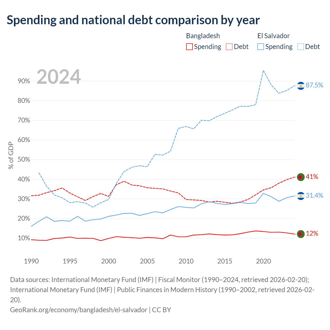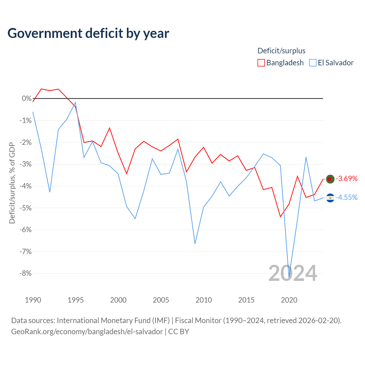 - International Monetary Fund (IMF) | Fiscal Monitor (1990–2024, retrieved 2026-02-20)
