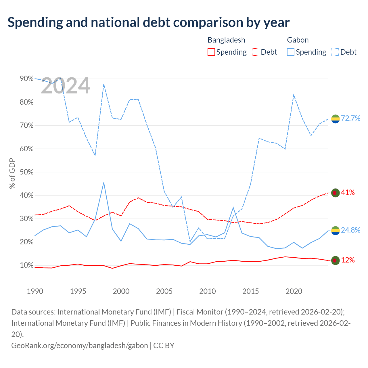 - International Monetary Fund (IMF) | Fiscal Monitor (1990–2024, retrieved 2026-02-20)