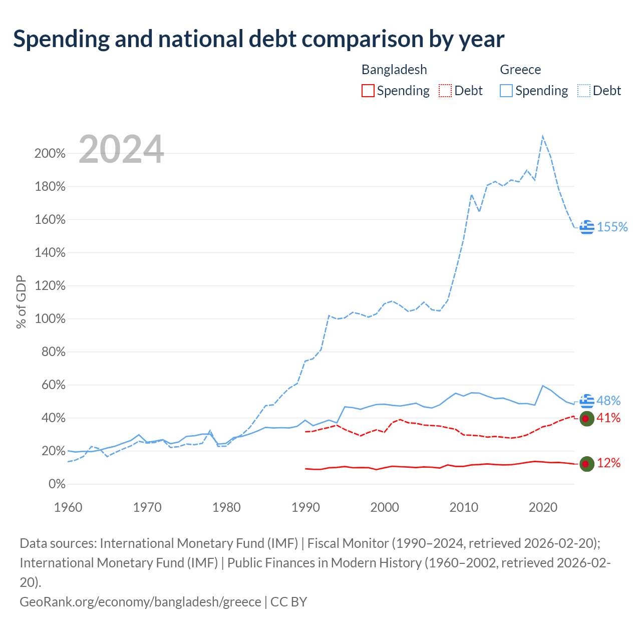 Bangladesh has $184B in government debt (41% of GDP), compared to $397B (154.8% of GDP) in Greece.