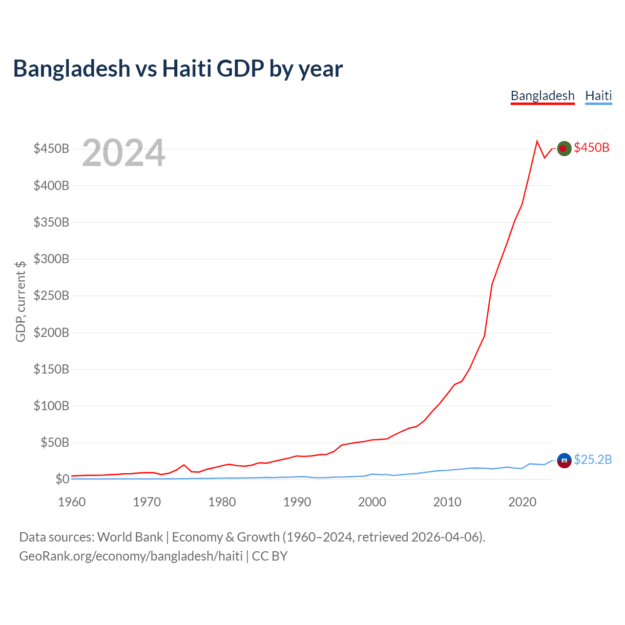Bangladesh vs Haiti GDP by year