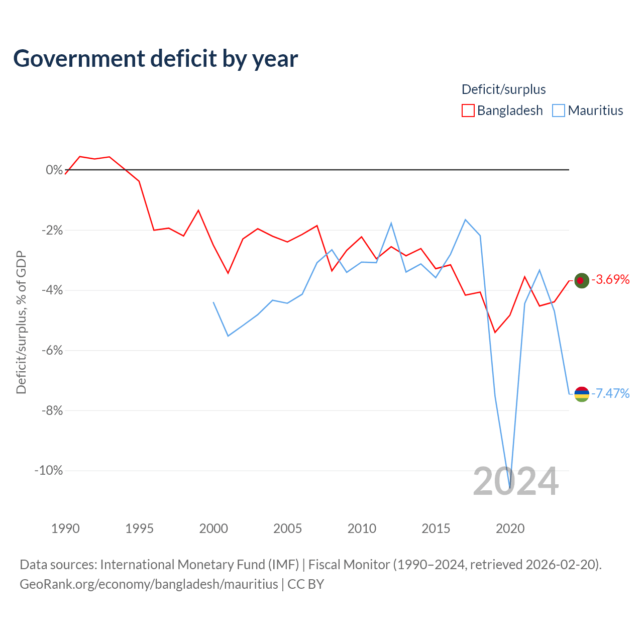 - International Monetary Fund (IMF) | Fiscal Monitor (1990–2024, retrieved 2026-02-20)