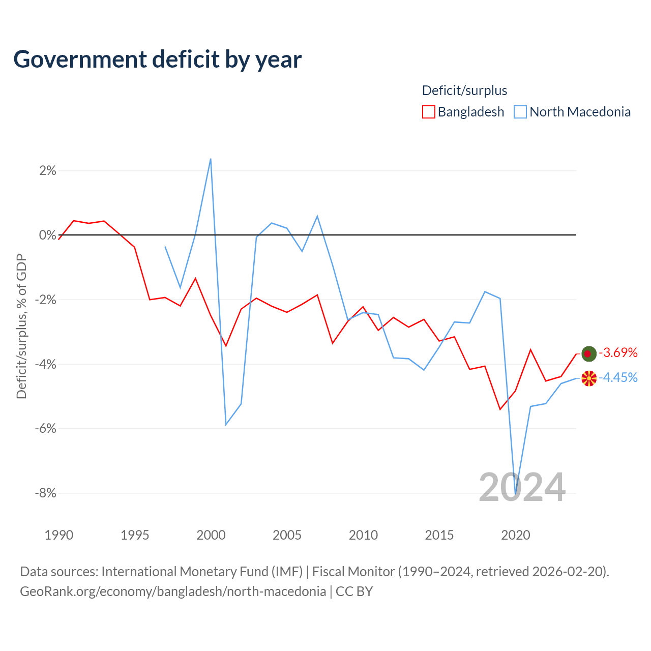 - International Monetary Fund (IMF) | Fiscal Monitor (1990–2024, retrieved 2026-02-20)