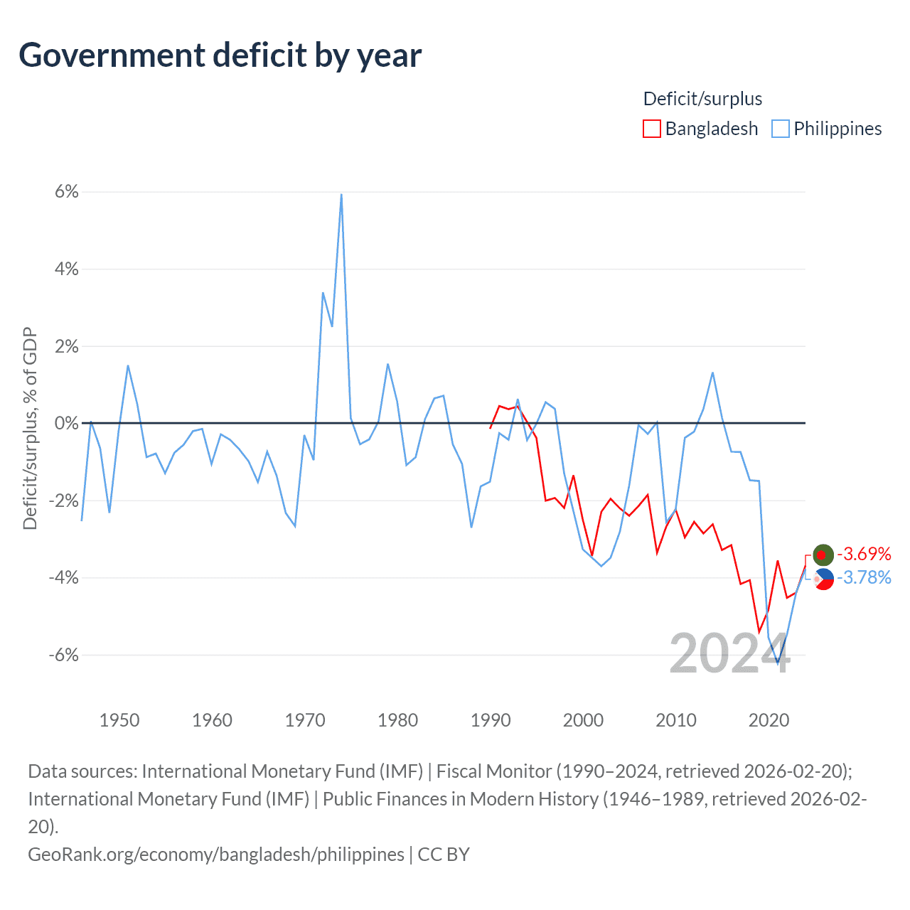 - International Monetary Fund (IMF) | Public Finances in Modern History (1946–2002, retrieved 2026-02-20)