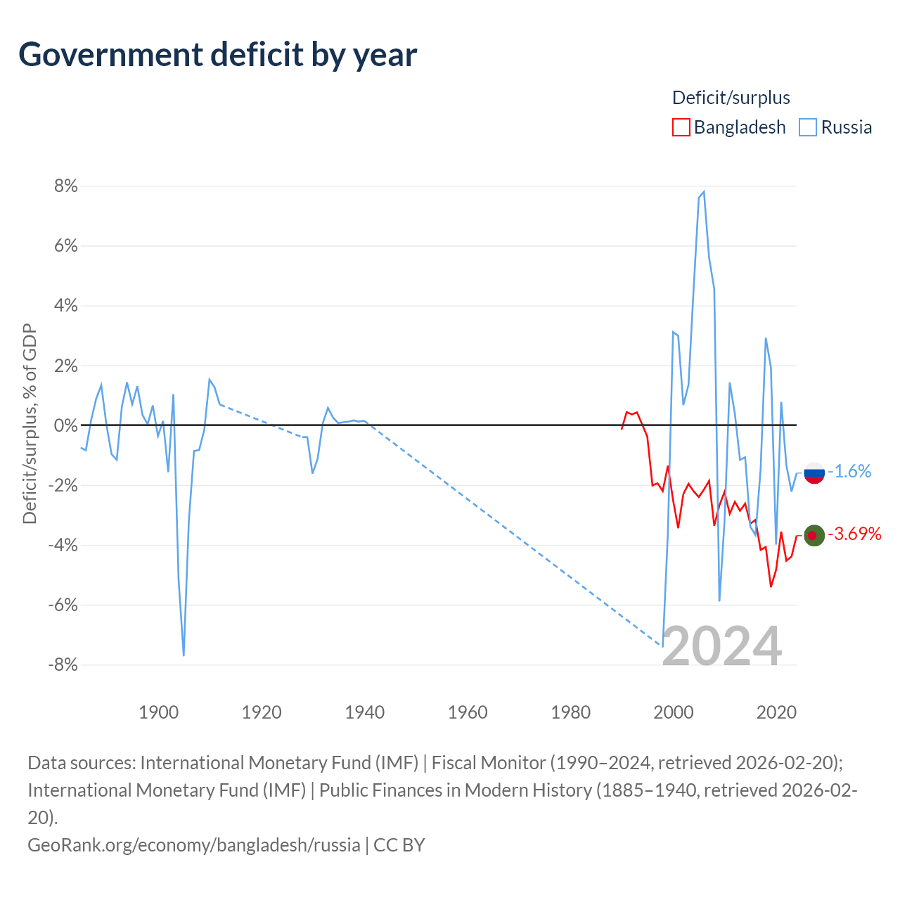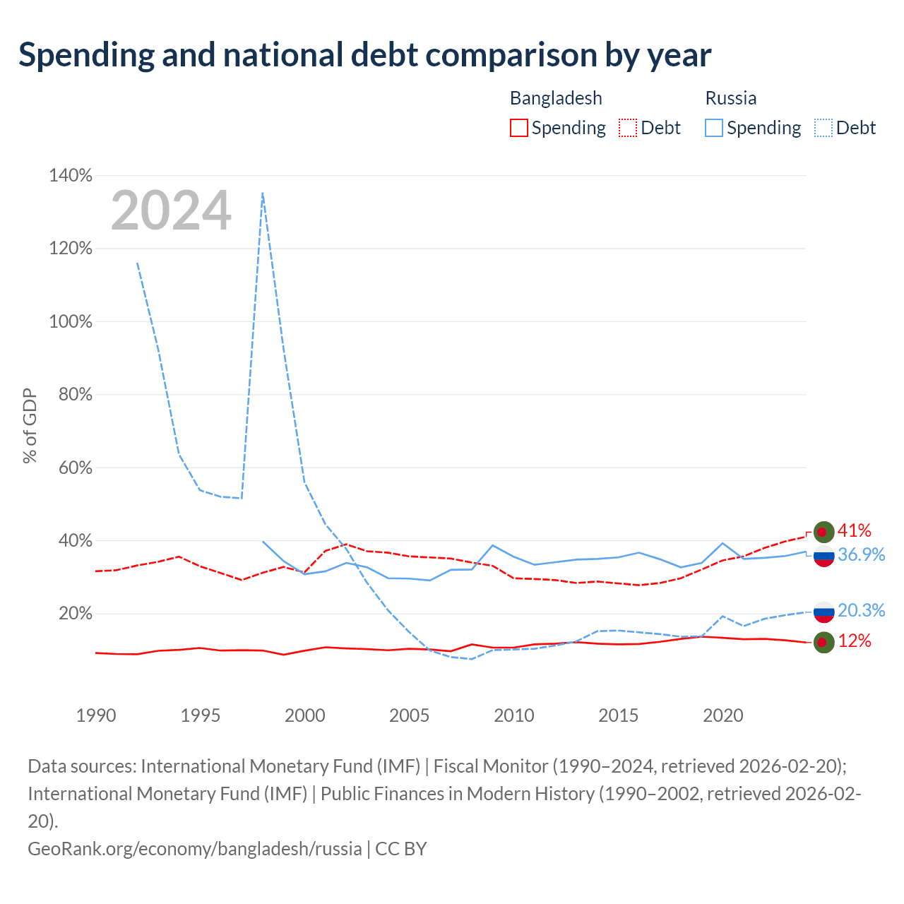 Bangladesh has $184B in government debt (41% of GDP), compared to $440B (20.3% of GDP) in Russia.