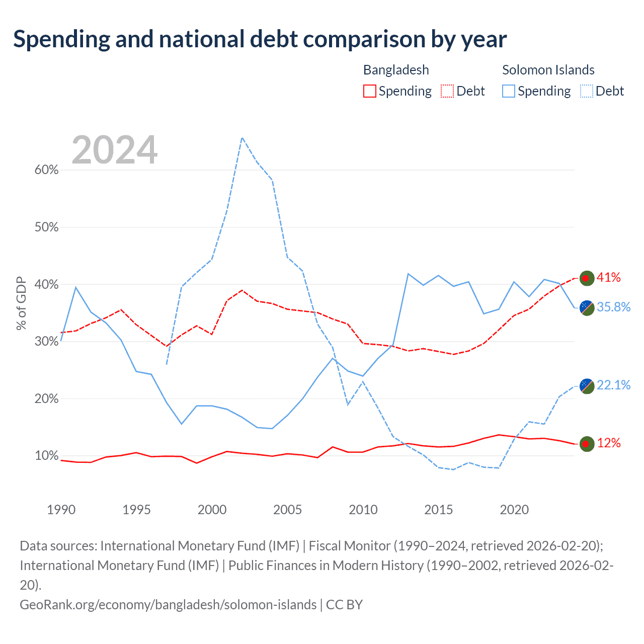 Bangladesh has $184B in government debt (41% of GDP), compared to $350M (22.1% of GDP) in the Solomon Islands.