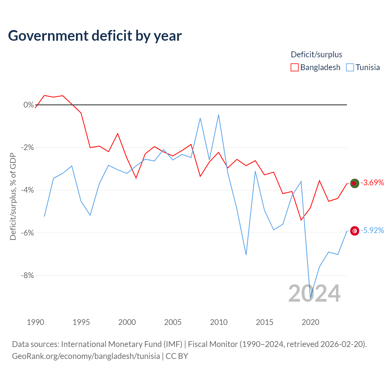 - International Monetary Fund (IMF) | Fiscal Monitor (1990–2024, retrieved 2026-02-20)
