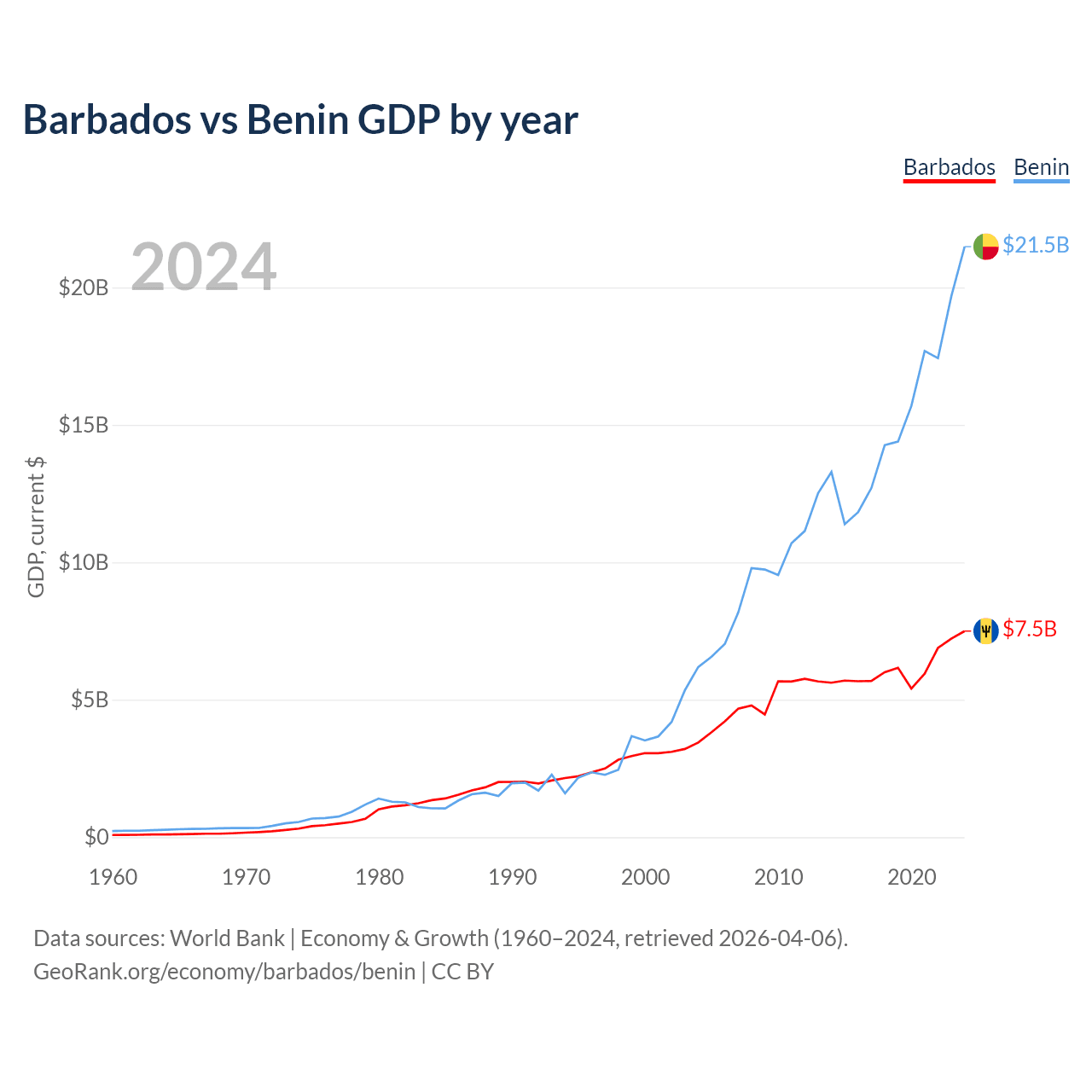 Barbados vs Benin GDP by year