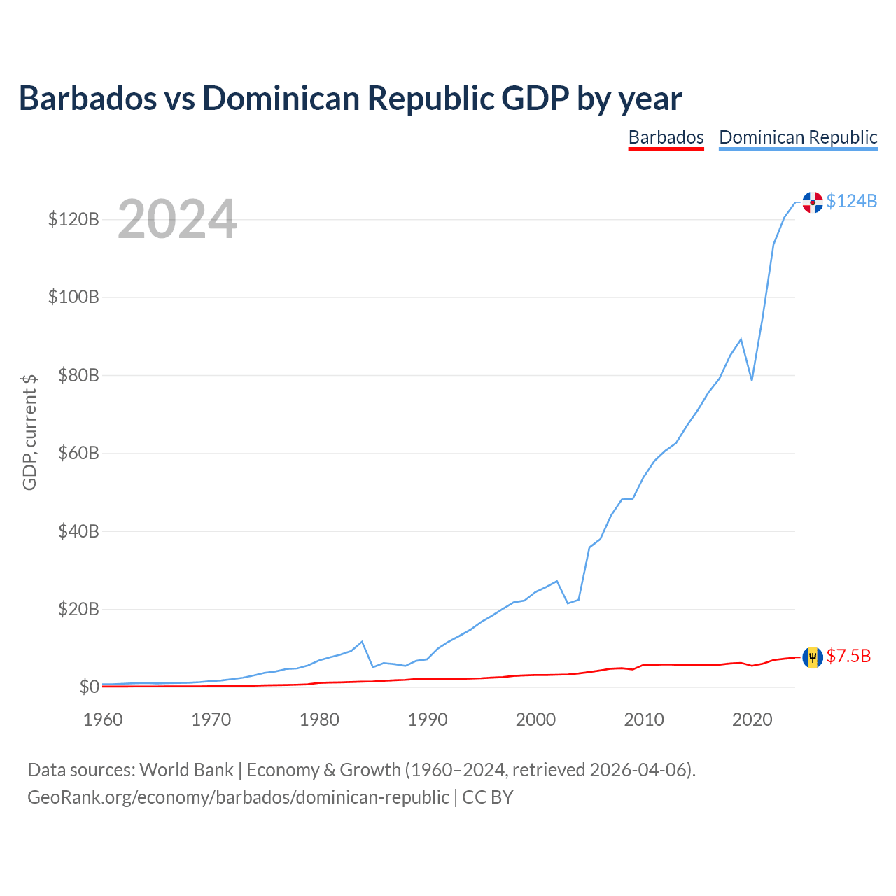 Barbados vs Dominican Republic GDP by year