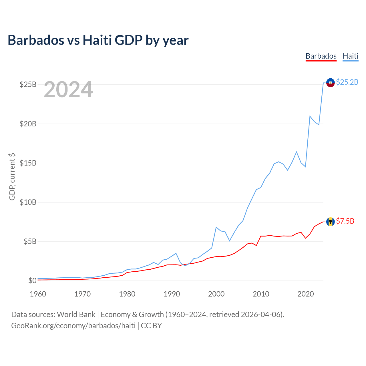 Barbados vs Haiti GDP by year