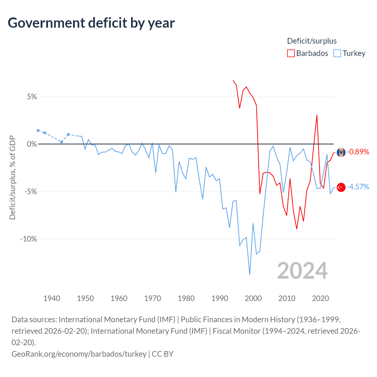 - International Monetary Fund (IMF) | Public Finances in Modern History (1936–1999, retrieved 2026-02-20)