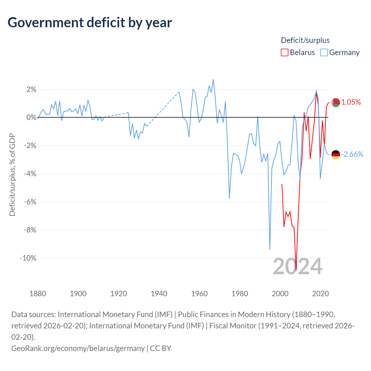Belarus has $30.3B in government debt (39.9% of GDP), compared to $2.97T (63.5% of GDP) in Germany.