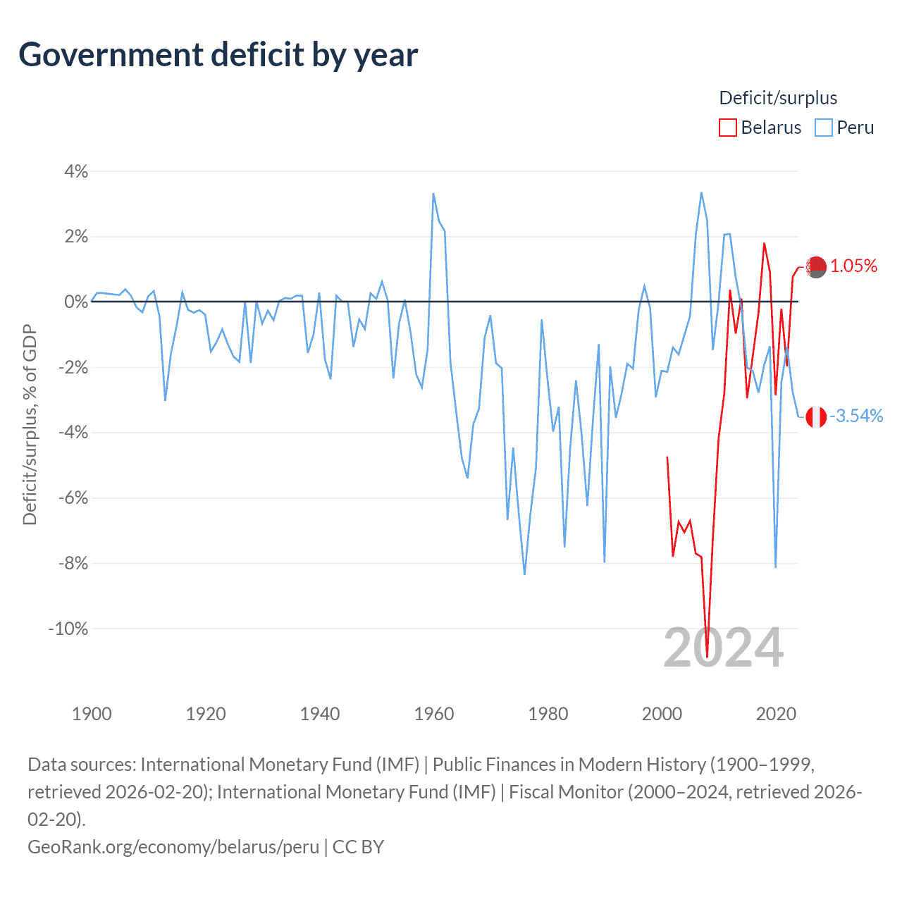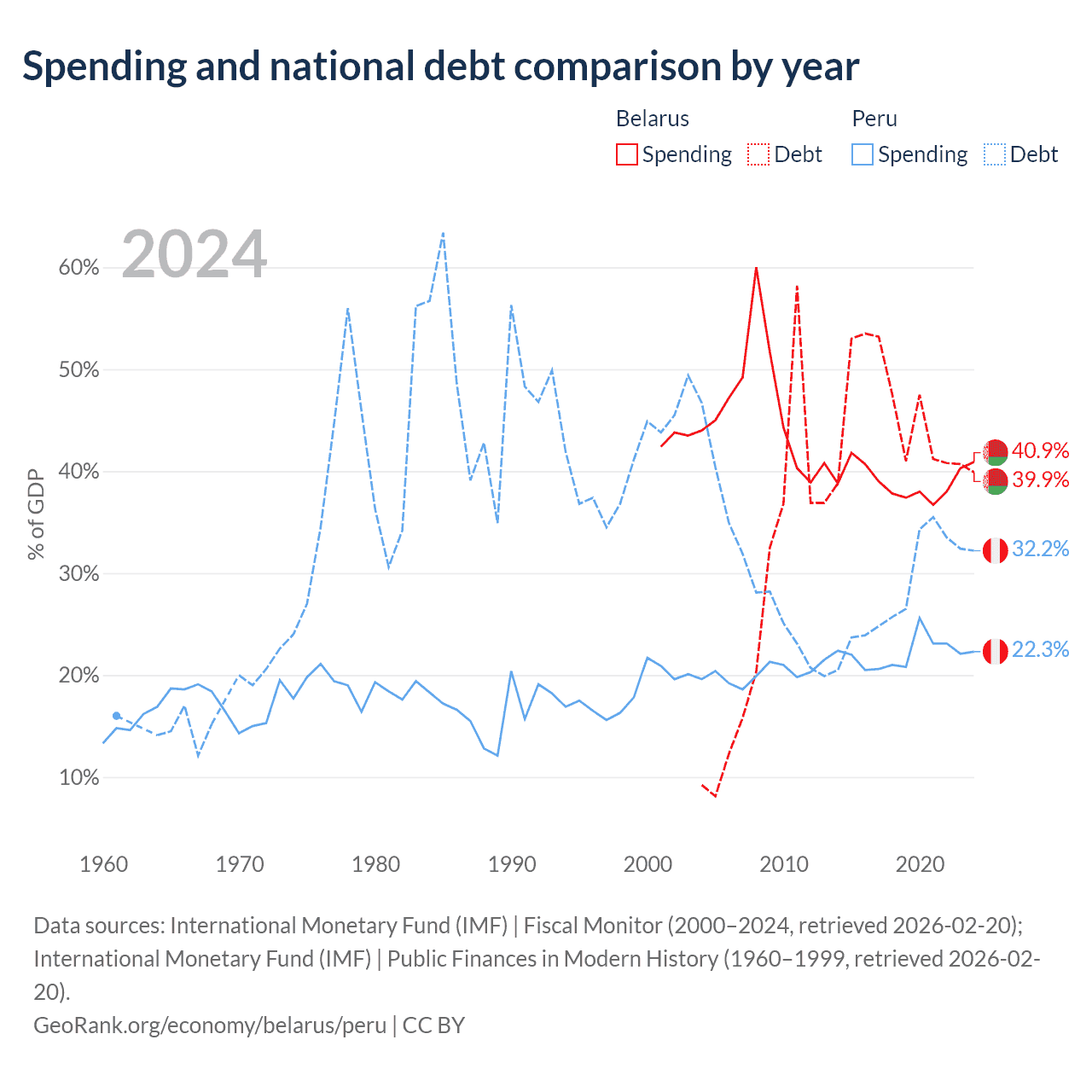 Belarus has $30.3B in government debt (39.9% of GDP), compared to $93B (32.2% of GDP) in Peru.