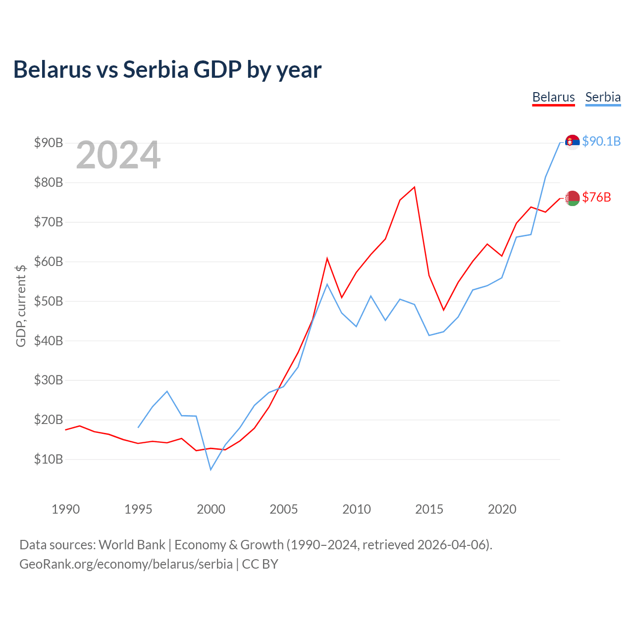 Belarus vs Serbia GDP by year