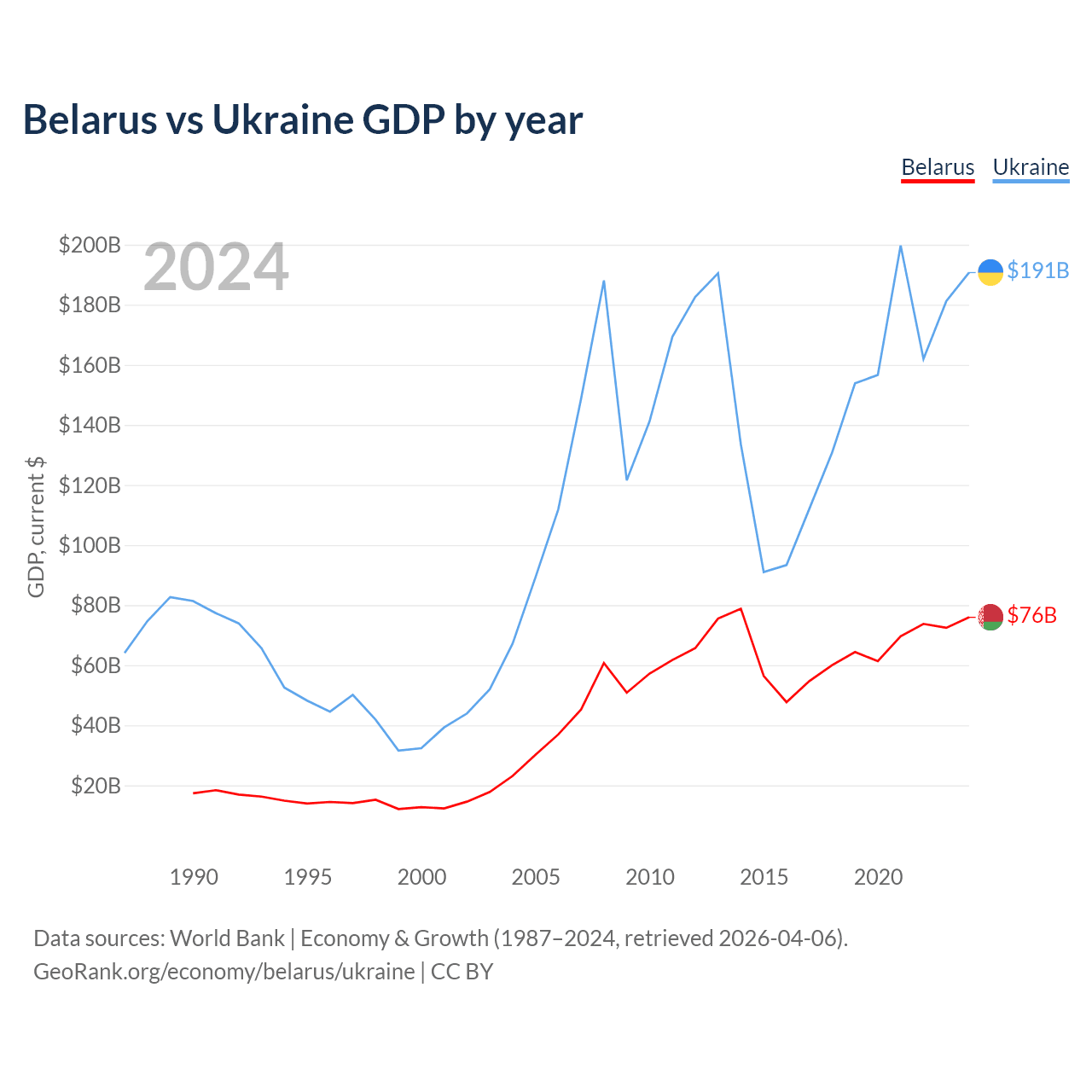 Belarus vs Ukraine GDP by year