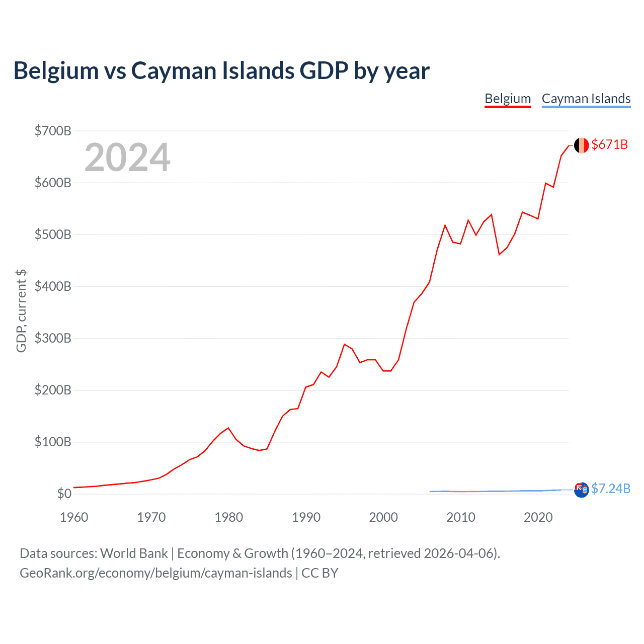Belgium vs Cayman Islands GDP by year