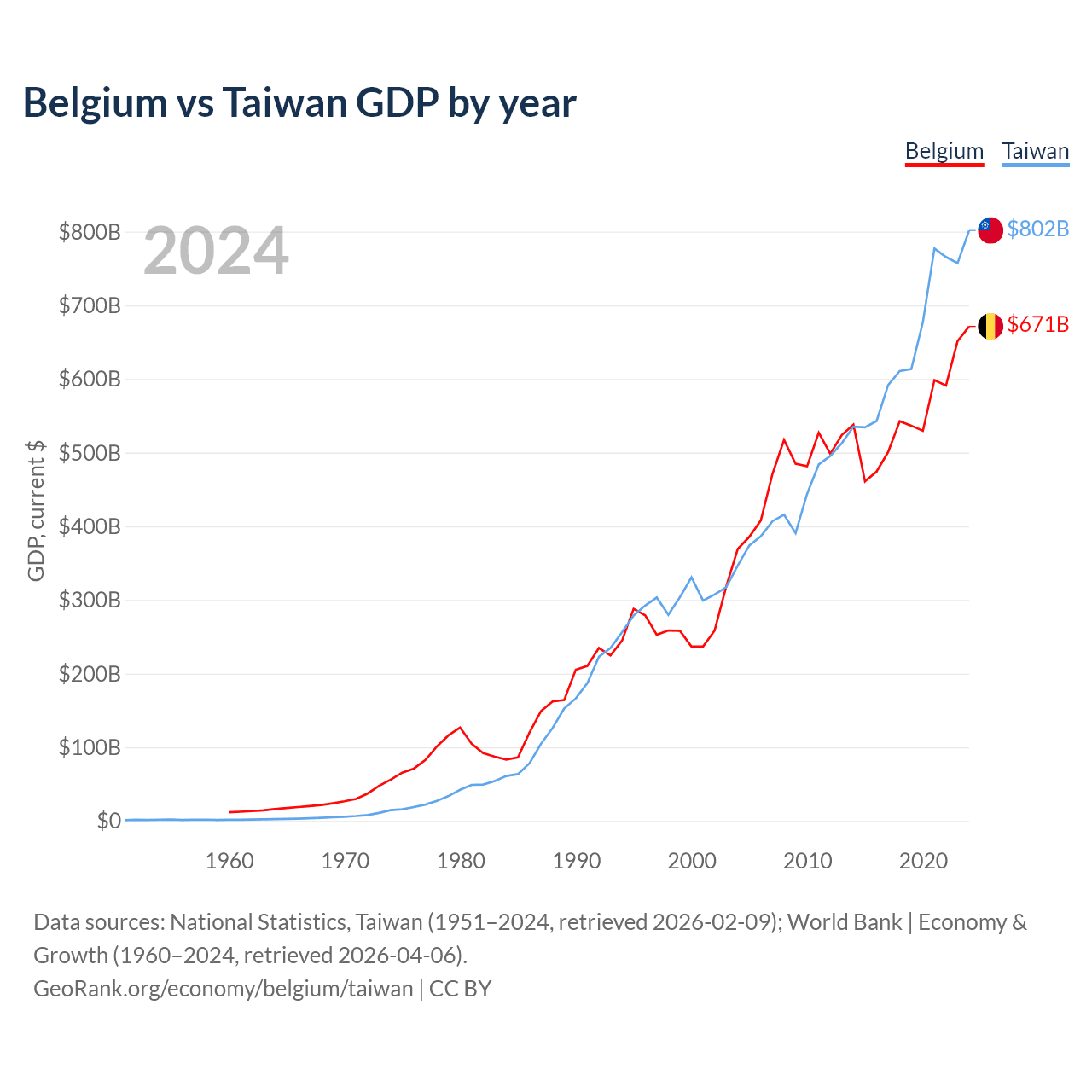 Belgium vs Taiwan GDP by year