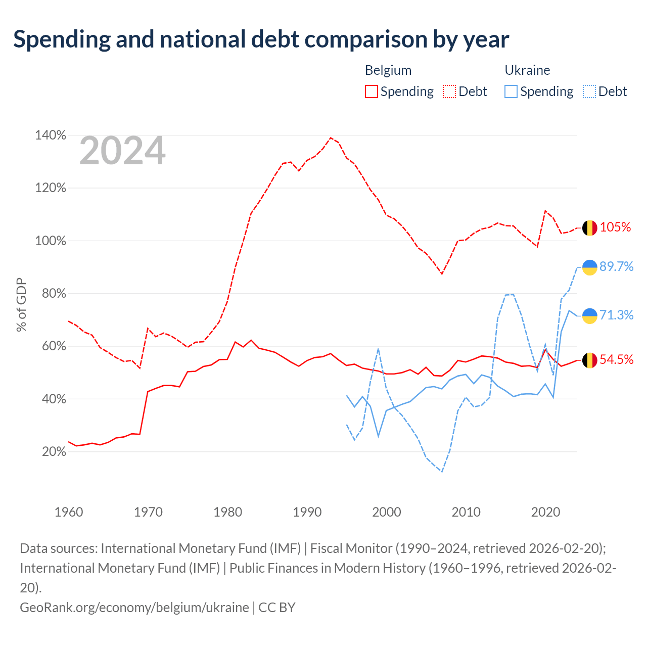 Belgium has $703B in government debt (104.7% of GDP), compared to $171B (89.7% of GDP) in Ukraine.
