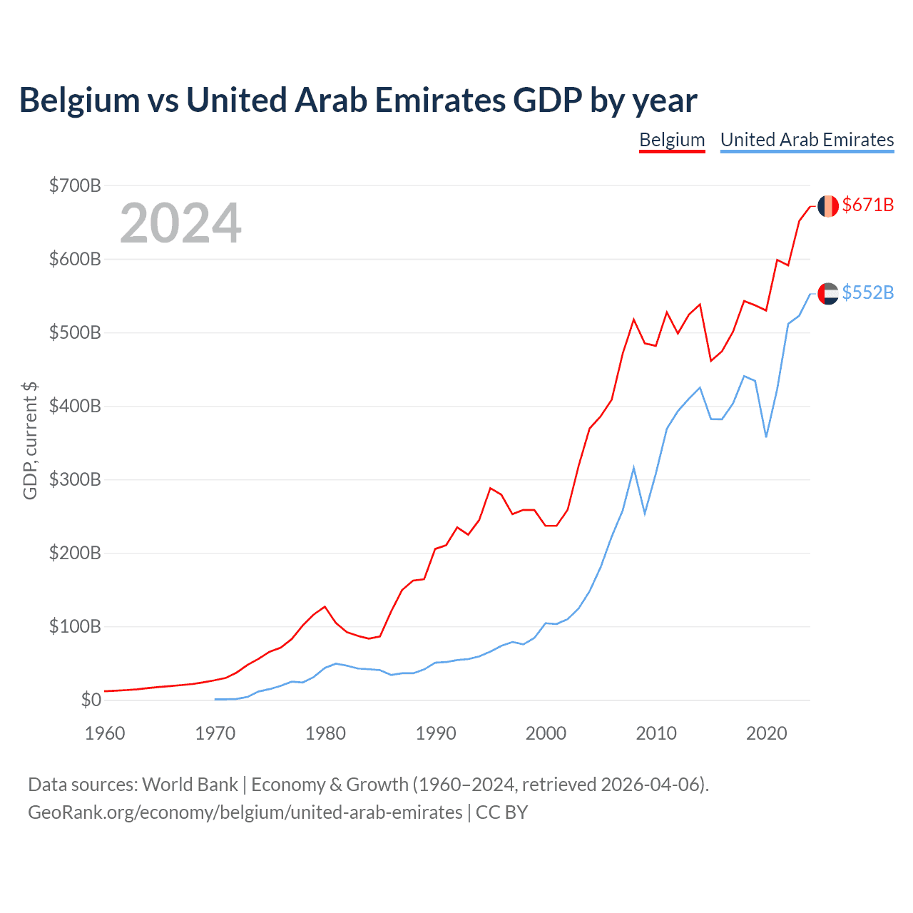 Belgium vs United Arab Emirates GDP by year