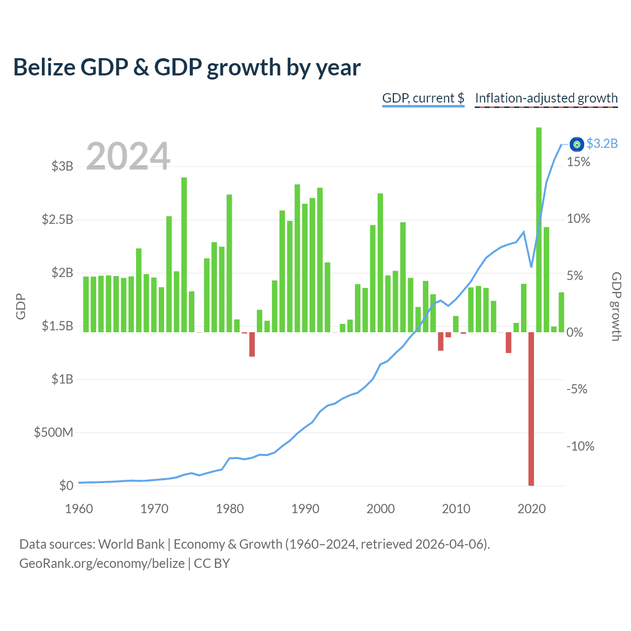 Belize GDP & GDP growth by year