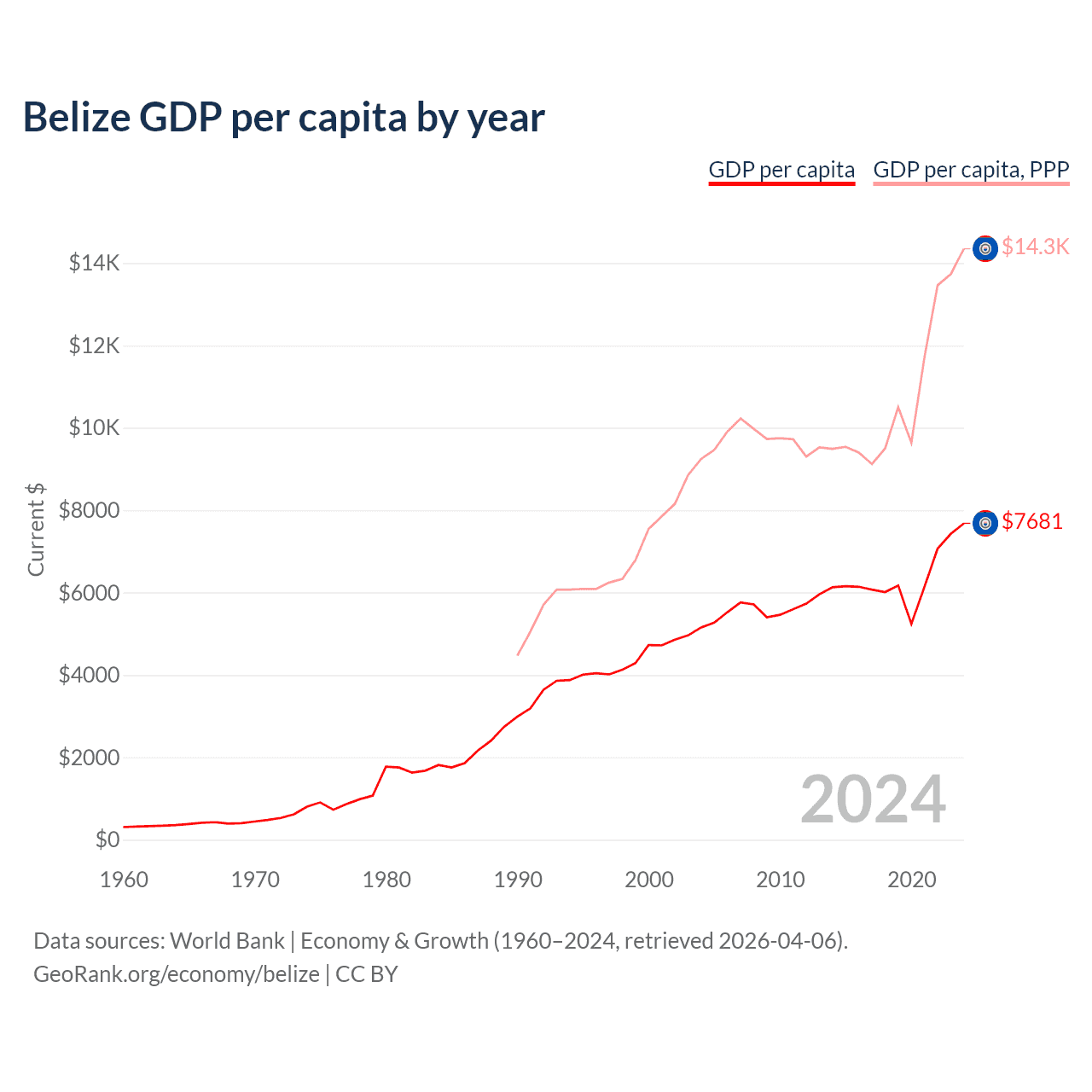 Belize GDP per capita by year