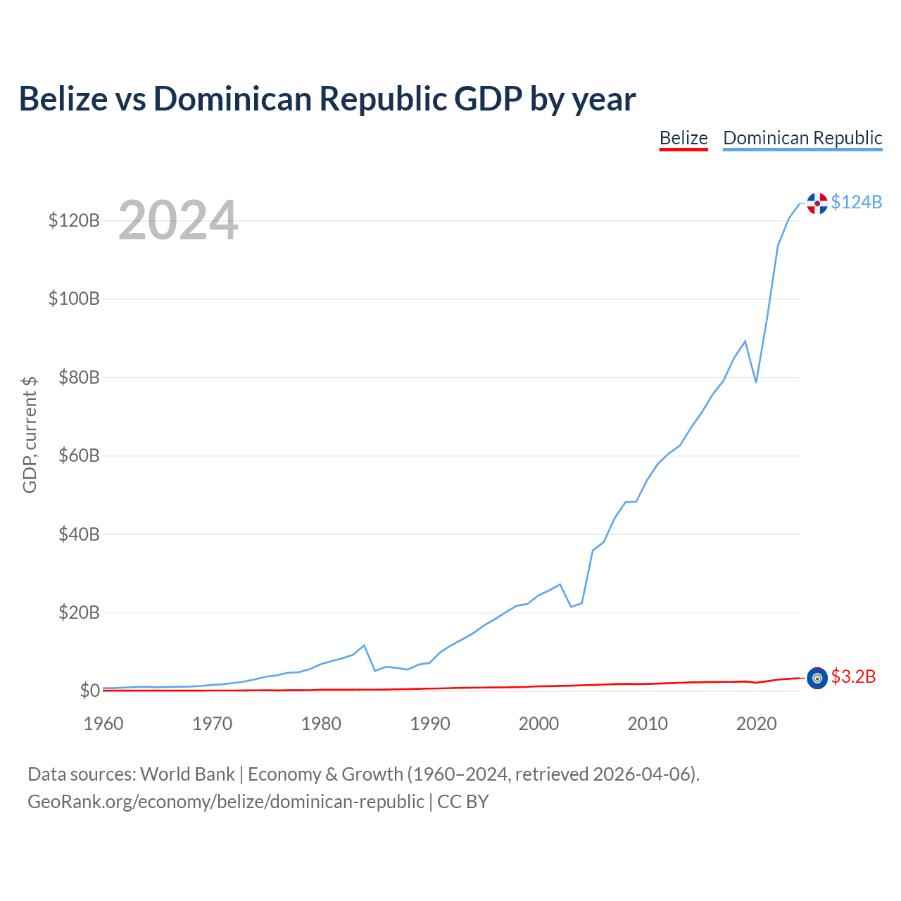Belize vs Dominican Republic GDP by year