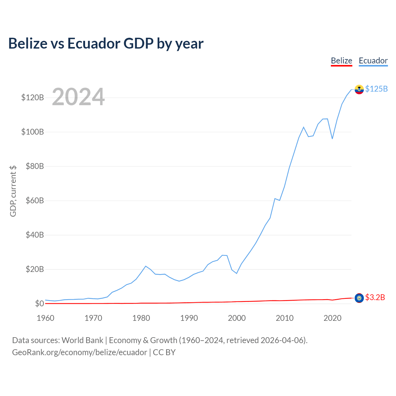 Belize vs Ecuador GDP by year