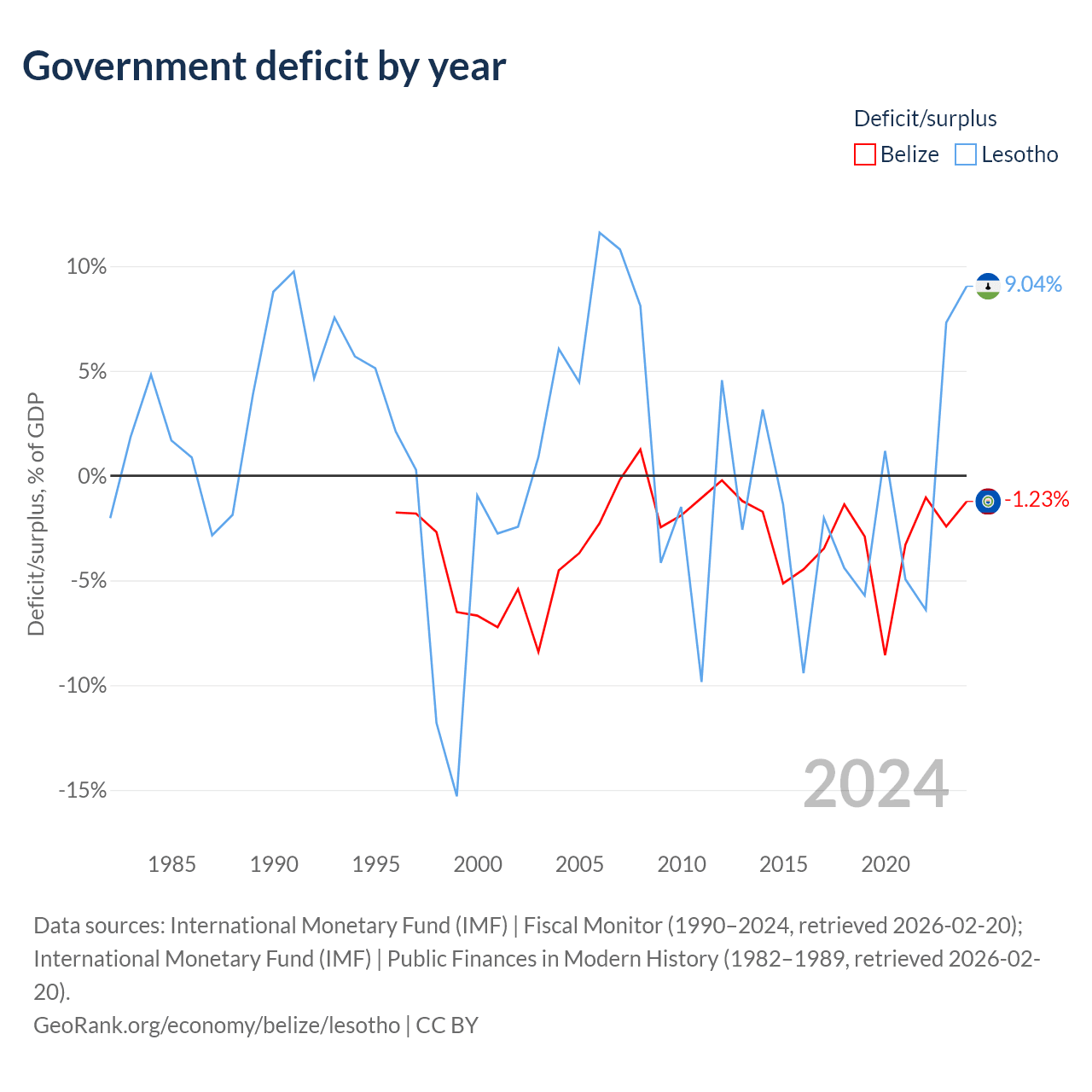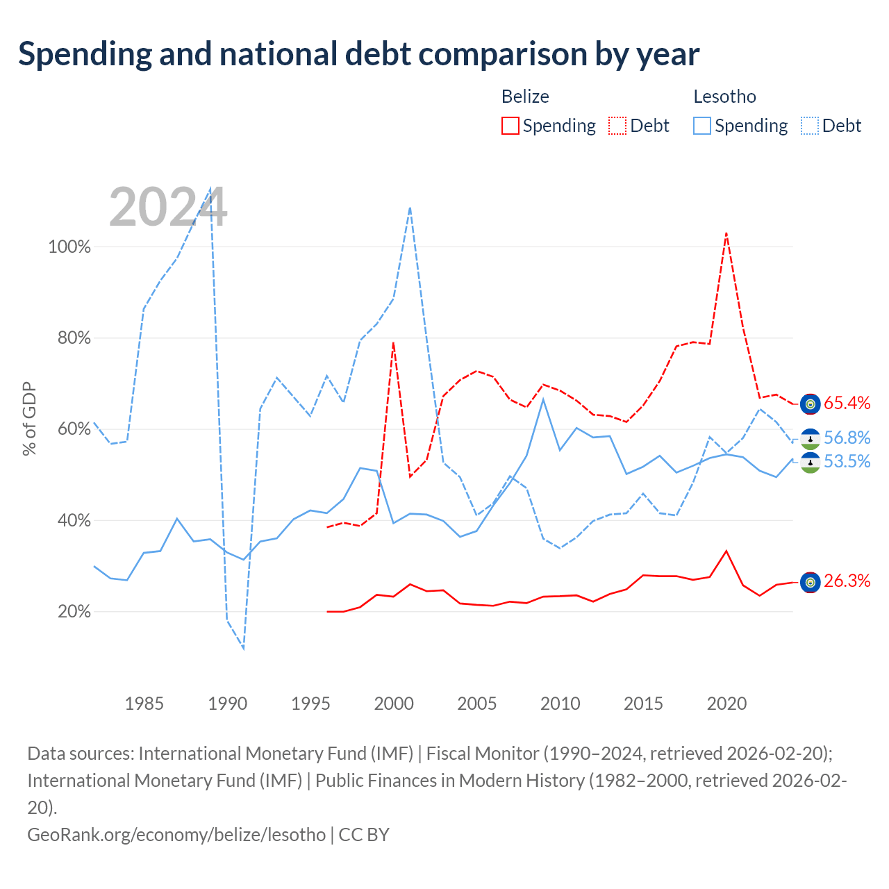 Belize has $2.1B in government debt (65.4% of GDP), compared to $1.29B (56.8% of GDP) in Lesotho.