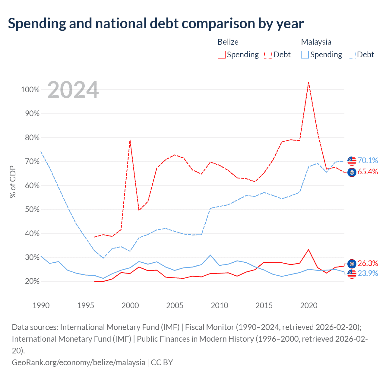 - International Monetary Fund (IMF) | Fiscal Monitor (1990–2024, retrieved 2026-02-20)