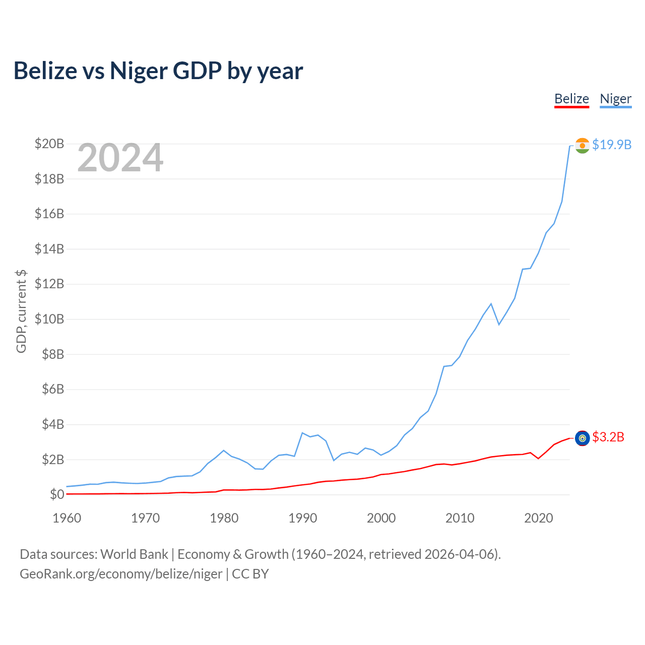Belize vs Niger GDP by year