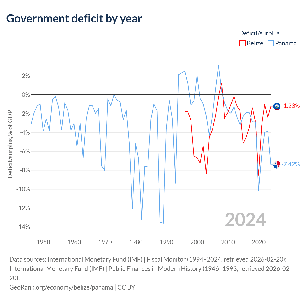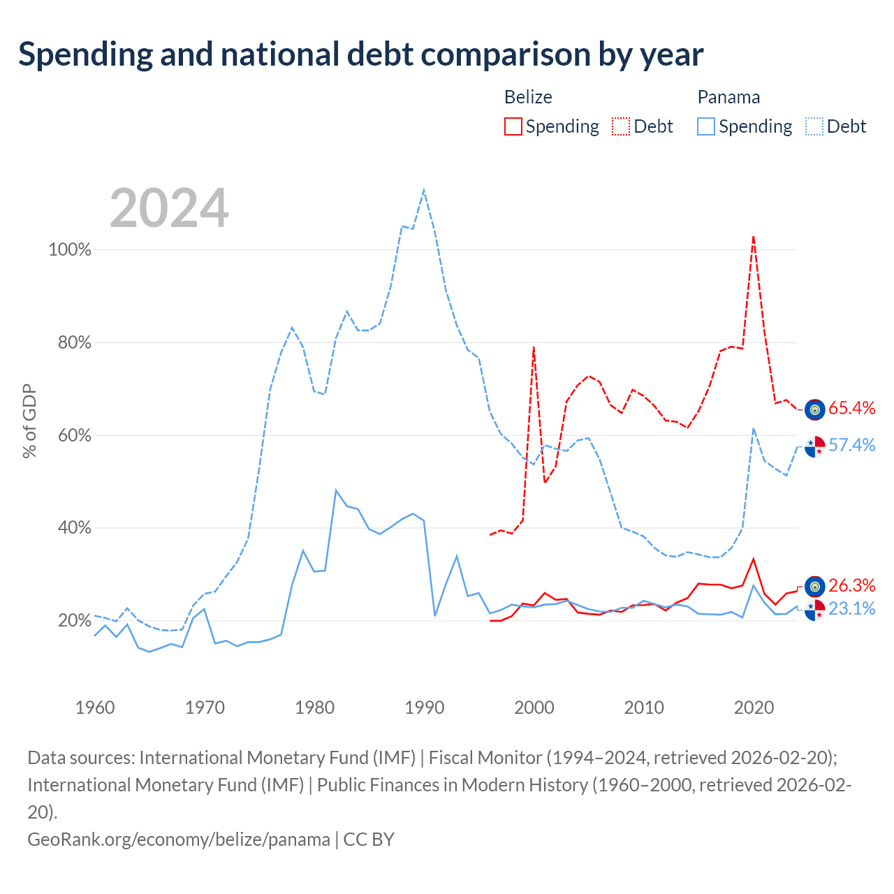 Belize has $2.1B in government debt (65.4% of GDP), compared to $49.6B (57.4% of GDP) in Panama.