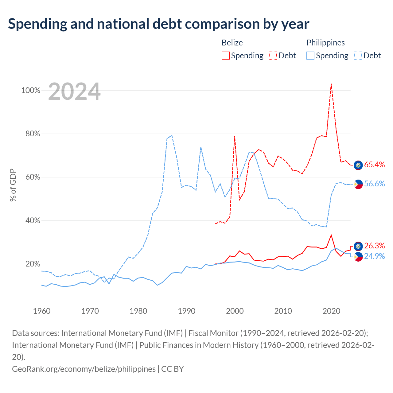 Belize has $2.1B in government debt (65.4% of GDP), compared to $261B (56.6% of GDP) in the Philippines.